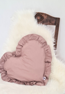 Poduszka dekoracyjna serce z falbanką BRUDNY RÓŻ