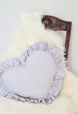 Poduszka dekoracyjna serce z falbanką POPIEL